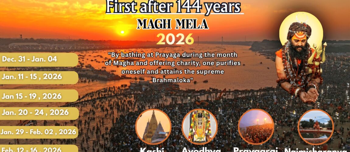 A Rare Conjunction After 144 Years Maha Kumbh Mela ! Join Us for Magh Mela 2026. Take a holy dip at the Triveni Sangam at Prayagraj and be blessed for a lifetime!